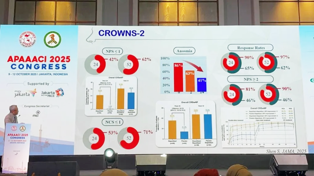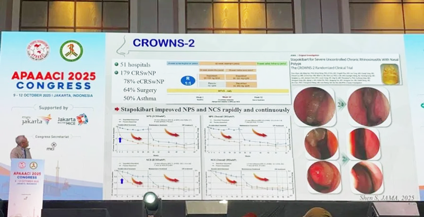 2025年10月9日至12日,由亚太过敏、哮喘与临床免疫学会(APAAACI)与印度尼西亚过敏与免疫学会(ISAI)联合举办的2025年APAAACI年会于印度尼西亚雅加达隆重召开,本次大会以“多元中的统一:推动过敏、哮喘与免疫学领域的科学与创新——从遗传学到细胞治疗”为主题,旨在融合最前沿的科学进展与临床实践经验,面向临床医生与科研人员,推动学术与实践的深度交流。上千位来自不同国家和地区的专家学者齐聚一堂,共同促进知识分享与跨领域合作,探讨应对过敏与免疫性疾病挑战和行业发展。司普奇拜单抗慢性鼻窦炎伴鼻息肉III期临床研究数据亮相本次大会,在国际舞台上展示中国的创新方案,获得与会专家的广泛关注。